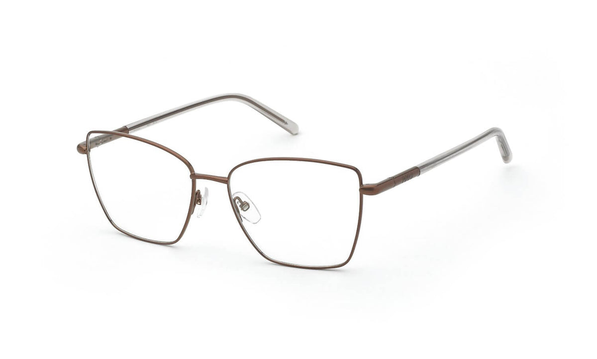 Montura femenina en metal con ligera forma mariposa de la marca Tous en tono marrón, combina varillas en acetato transparente. Visita nuestro centro óptico en Santiago de Compostela ¡Te esperamos!