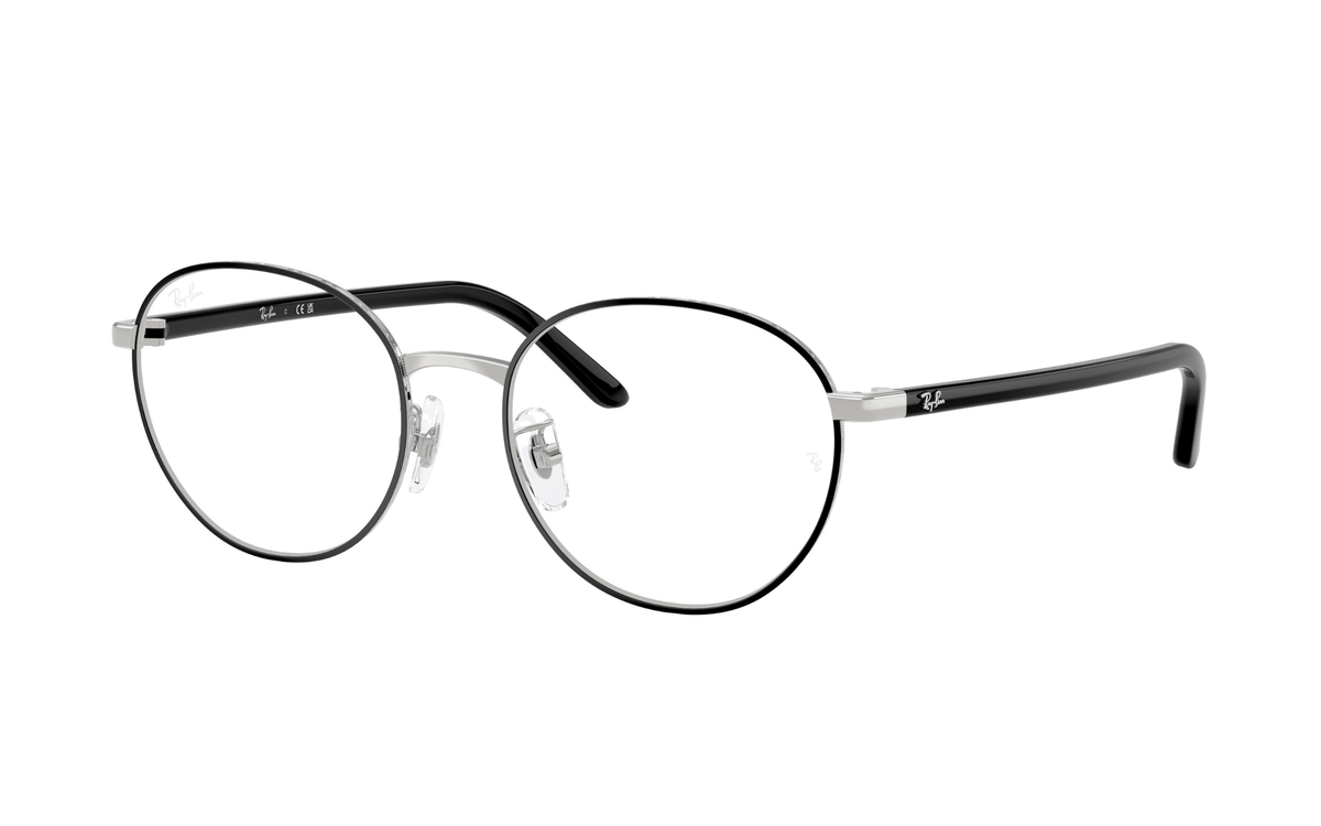 Montura metálica unisex con forma redonda de color negro y plateado, combina varillas en acetato negro. Visita nuestro centro óptico en Santiago de Compostela ¡Te esperamos!